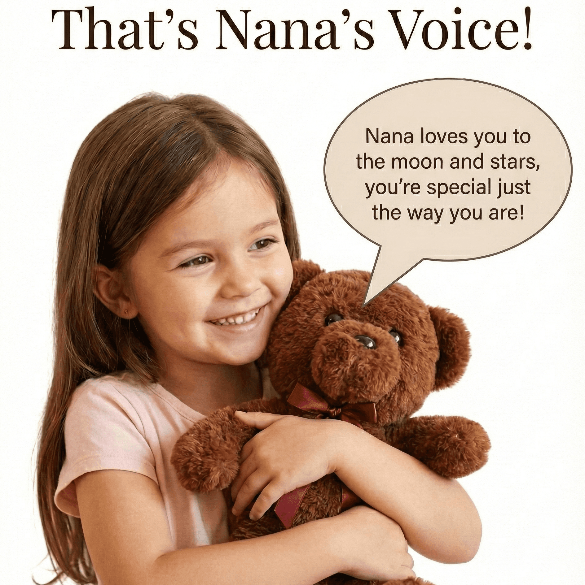 These personalized stories are brought to life in your voice, played from an adorable bear they’ll treasure forever.