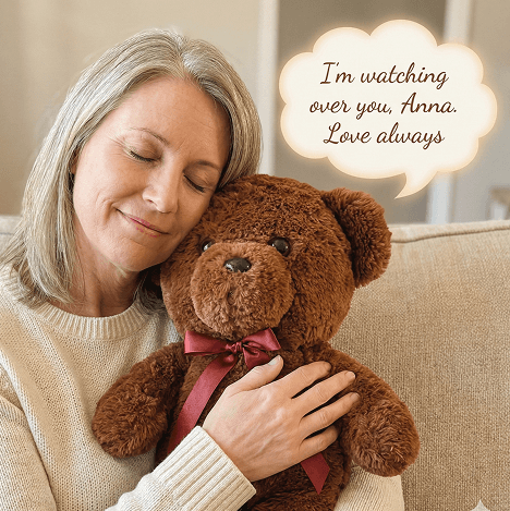 "I was hesitant about this bear, but when I heard Michael's voice talk about our actual wedding, our Thanksgiving tradition and saying he loves me, I cried happy tears. The kids and I listen every night. With new stories each month for birthdays, holidays, and hard days, it's become our lifeline." — Kathleen R.