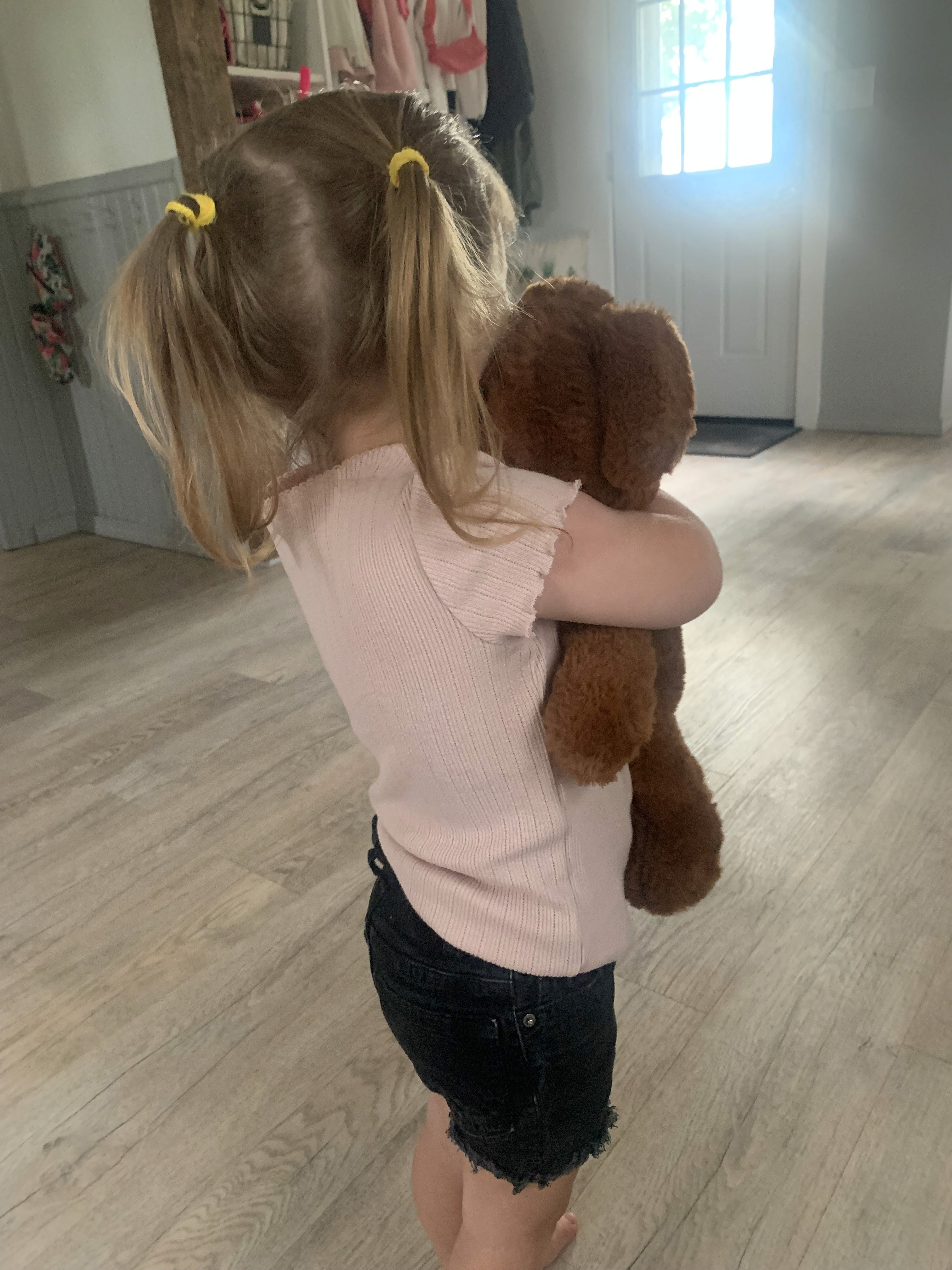 Katie Loves her Daddy Bear so much. She takes it everywhere she goes and listen to him every night before bed.